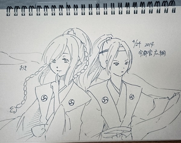 昨日宇都宮広綱の衣装に三つ巴を描きました。